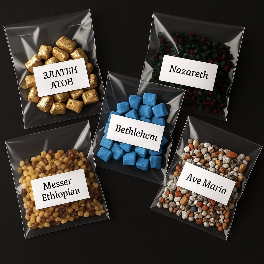Представяме ви комплект смоли Коледен ритуал, старателно опакован в картонен плик.